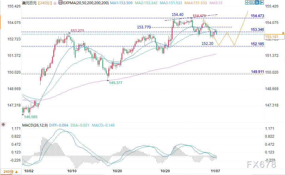 EBC官网——周五(11月7日)欧盘时段,美元兑日元汇率回落至153.10水平。避险情绪升温背景下,日元保住了近期部分